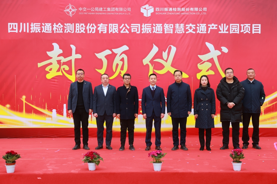 2023年1月16日上午,振通智慧交通產(chǎn)業(yè)園主體結(jié)構(gòu)封頂儀式在綿陽(yáng)隆重舉行。綿陽(yáng)市涪城區(qū)區(qū)委常委、區(qū)人民政府副區(qū)長(zhǎng)、金家林總部經(jīng)濟(jì)試驗(yàn)區(qū)黨工委副書(shū)記、金家林總部試驗(yàn)區(qū)管委會(huì)主任黃維,中交一公局建工集團(tuán)有限公司副總經(jīng)理劉向軍,四川振通檢測(cè)股份有限公司董事長(zhǎng)杜義祥等領(lǐng)導(dǎo)嘉賓出席儀式。